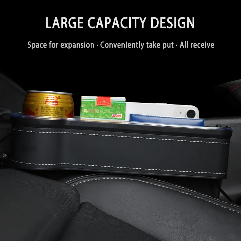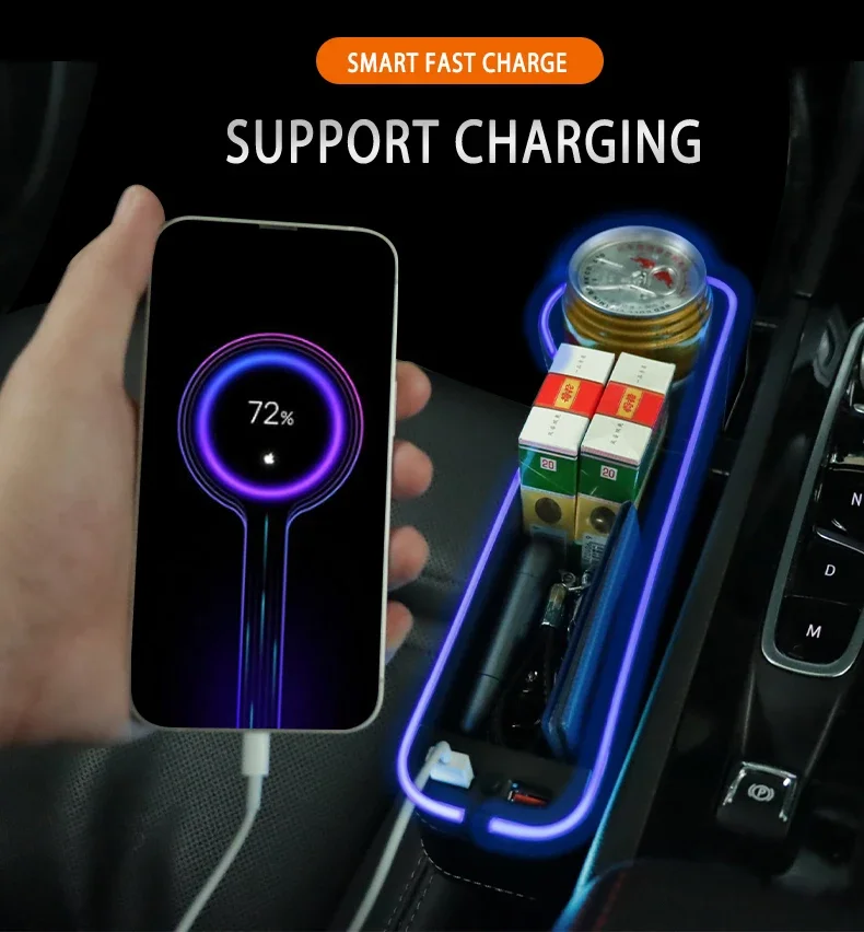 【MASS STORAGE FUNCTION】This car seat gap filler leather car seat organizer is tested for quality and durability.Led seat gap organizer is made of ABS plastic and PU leather. Easy to install: simply insert it between the console and the seat. Store your mobile phone, drinks, sunglasses, credit cards, keys, coins etc. Not only will it keep your car clean at all times, it will also allow you to focus on the road and driving without worrying about dropping your phone or other small items.