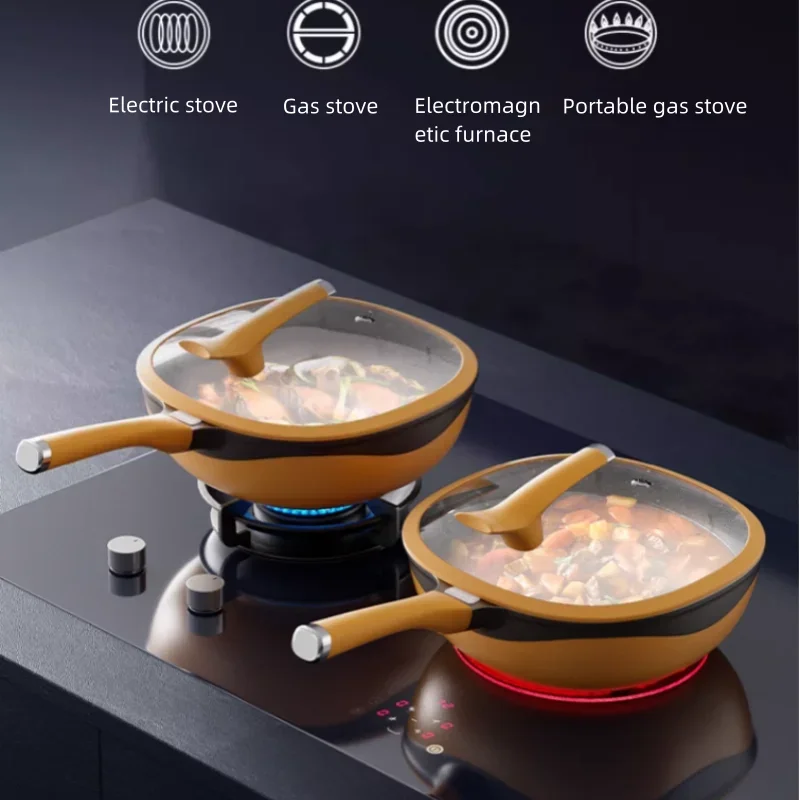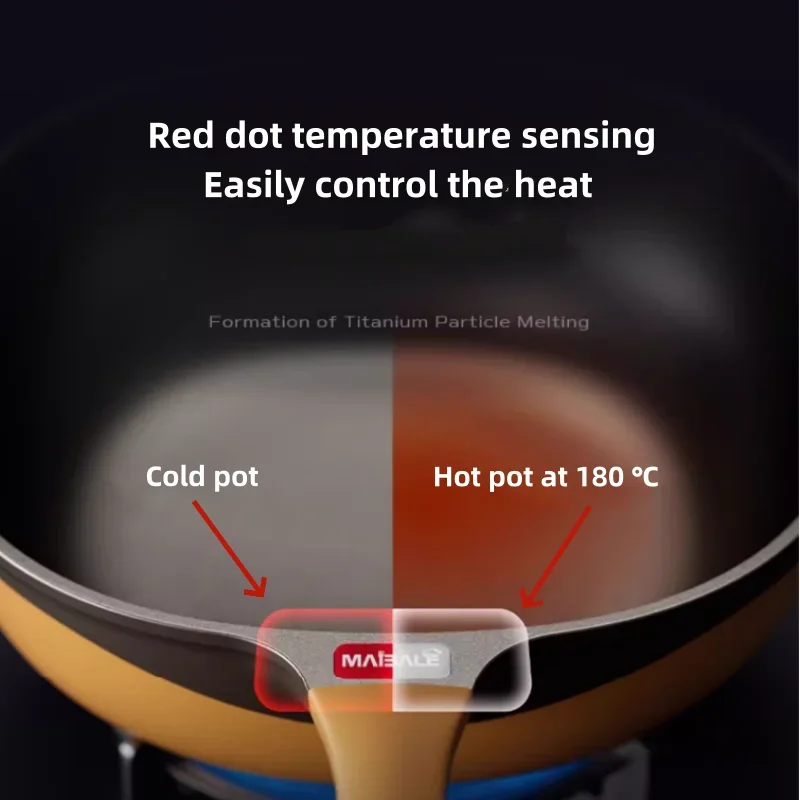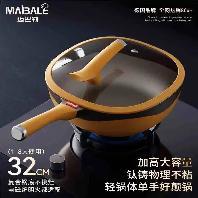 Maibole Titanium 32cm Woks Stone Cast Pan with Non-Stick Coating for Cooking on Induction Stove and Gas Stove Vertical Pot Lid